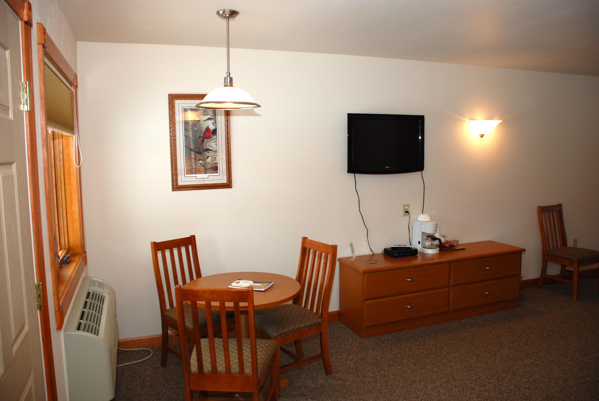 Our Deluxe Rooms also include a microwave, small refrigerator and a table with four chairs.