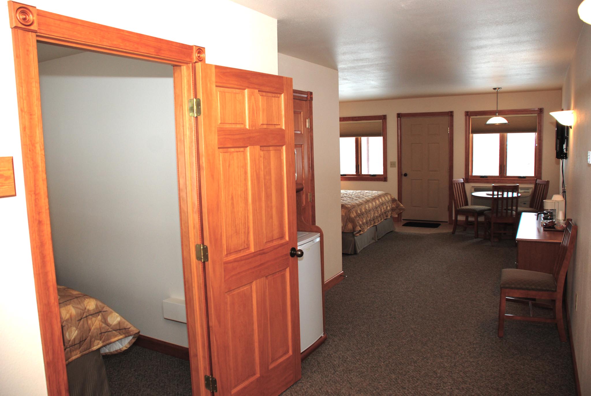 These rooms include, one queen bed in a separate bedroom, one king bed in main area, one bathroom with a shower and a 32” flat screen TV.